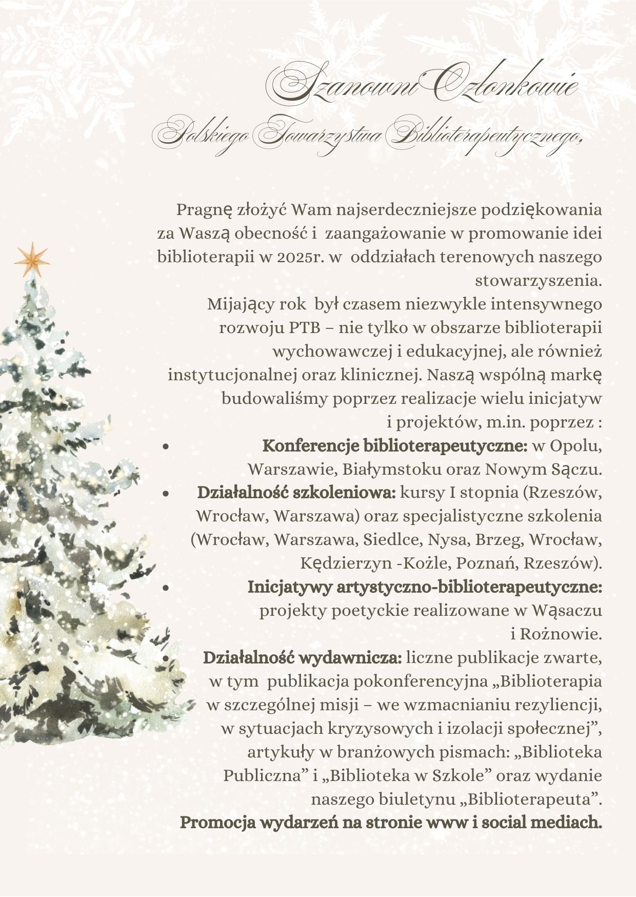 popularyzacja biblioterapii szczególnie wśród bibliotekarzy, nauczycieli, psychologów, pedagogów, pracowników socjalnych, terapeutów zajęciowych.