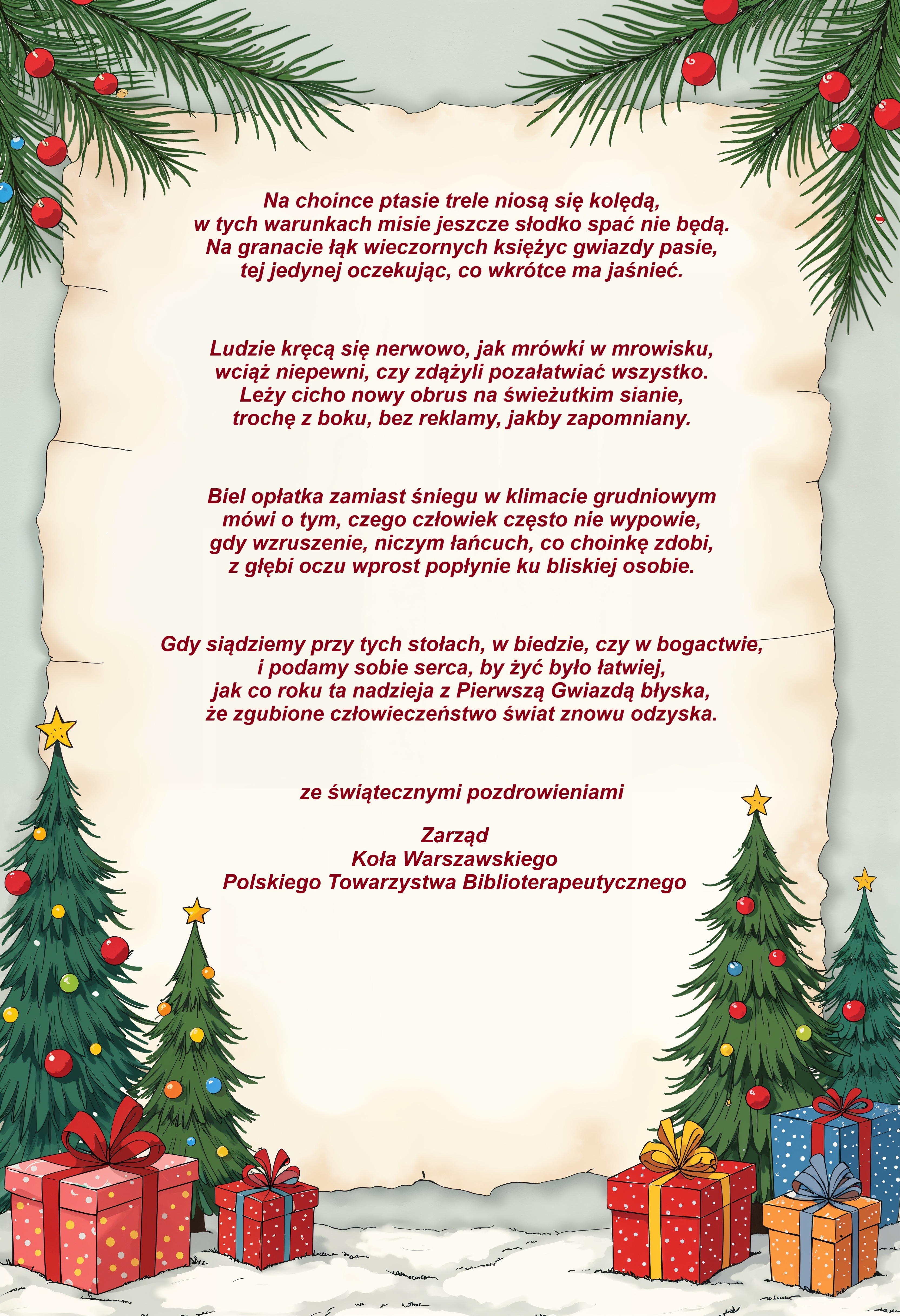 19 grudnia br. odbyło się, ostatnie w tym roku, spotkanie Sieci "Biblioterapeutyczne Podróże przez Światy Małe i Duże". W formule online rozpoczęliśmy szkoleniem z elementami biblioterapii "Mój przyjaciel migrant", w ramach którego zaproponowane zostały zajęcia, które można prowadzić z młodszą i starszą młodzieżą, a także z dorosłymi, a zwłaszcza z seniorami.