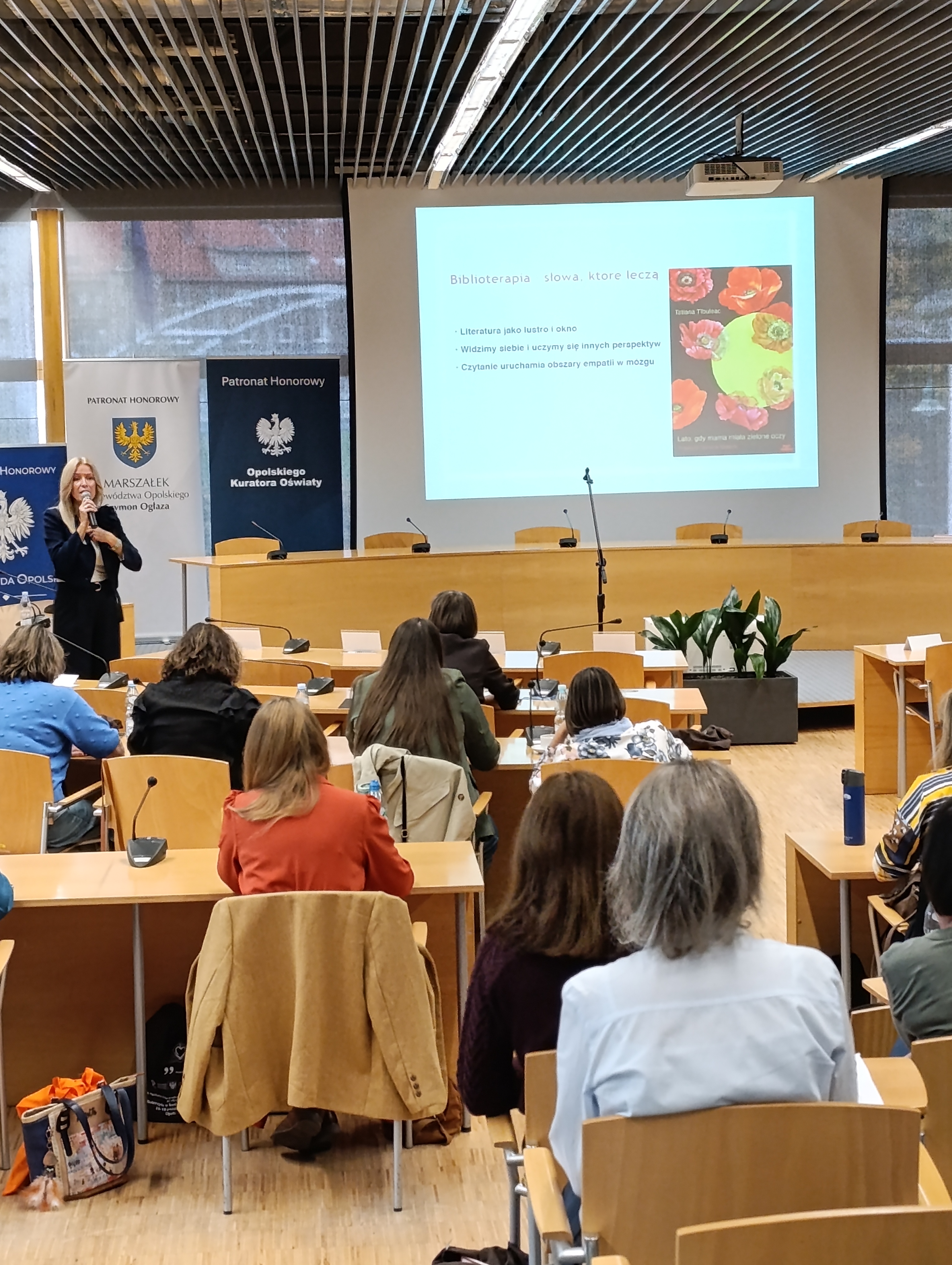 A po wszystkim, podczas spacerów po Opolu w oczekiwaniu na pociąg, a potem w pociągu mogliśmy podzielić się wrażeniami między sobą z koleżankami i kolegą, bo uczestniczyliśmy w różnych warsztatach. Dzięki temu wymieniliśmy się wrażeniami, dyskutowaliśmy jeszcze o podjętych w trakcje konferencji tematach i była to najwyraźniej dyskusja wciągająca, bo człowiek, który podróżował po sąsiedzku w pewnej chwili przyznał, że z zainteresowaniem nas słuchał. Nauczyciel jak my, więc biblioterapeutyczne podejście nie było mu obce, a tematy płynnie przesuwały nam się w rozmowie jak widoki za oknem pędzącego z Opola do Warszawy pociągu. Świat jest pełen ludzi wrażliwych – wystarczy umieć słuchać, odważyć się nawiązać relacje, a potem to już samo się kręci.
