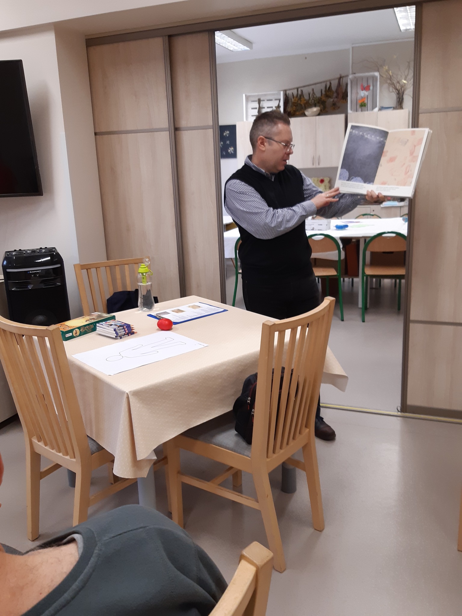 Na październikowym spotkaniu w Środowiskowym Domu Samopomocy w Gryfinie, uczestnicy wzięli udział w zajęciach biblioterapeutycznych poprowadzonych przez członka Koła Wrocławskiego PTB Mariusza Kiełtykę – „Każdy zasługuje na uwagę czyli jak z niewidzialnego człowieka stać się zauważonym”, na podstawie książki obrazkowej Joanny Concejo „Pan Nikt”.