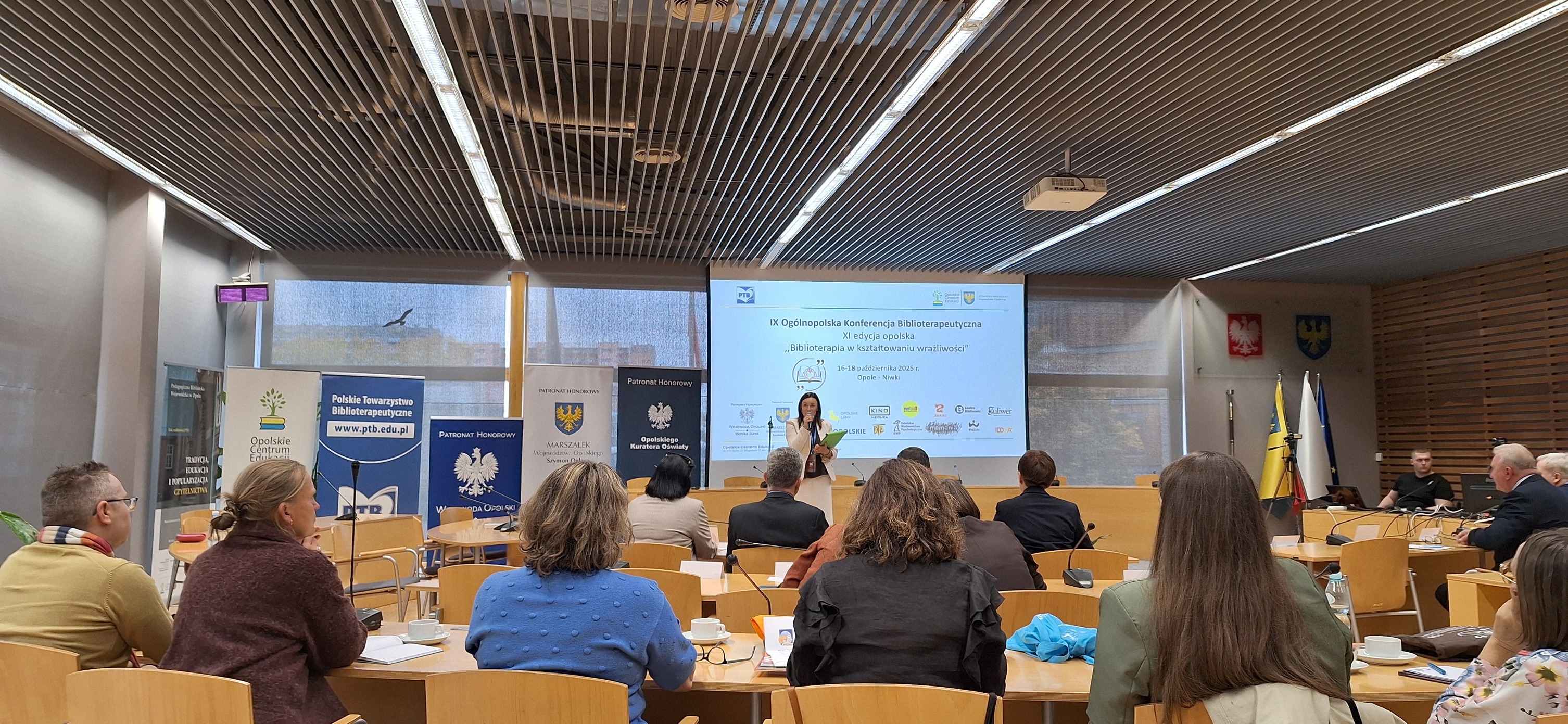 W dniach 16-18.10.2025 roku reprezentacja Koła Wrocławskiego PTB w składzie: Edyta Błasiak, Marta Grabowska, Małgorzata Bielska, Magdalena Prokopowicz, Dagmara Łupicka-Szczęśnik, Mariusz Kiełtyka uczestniczyła w IX Ogólnopolskiej Konferencji Biblioterapeutycznej, XI edycji opolskiej, która odbywała się pod hasłem "Biblioterapia w kształtowaniu wrażliwości" w Opolu oraz w Ośrodku Szkoleniowym w Niwkach. Konferencja zorganizowana została przez Opolskie Centrum Edukacji, Pracownię Biblioterapii oraz Polskie Towarzystwo Biblioterapeutyczne, to jedyna taka trzydniowa szkoleniowo- warsztatowa Konferencja w Polsce w obszarze arte- i biblioterapii, ukazująca terapeutyczne oddziaływanie nie tylko literatury, ale także filmu, teatru, sztuki, muzyki, tańca, kąpieli leśnej, jogi w rozwoju, edukacji oraz terapii. Z radością dzielimy się informacją, że troje naszych członków (dr Dagmara Łupicka-Szczęśnik, Magdalena Prokopowicz oraz Mariusz Kiełtyka) znalazło się w gronie prelegentów Konferencji.