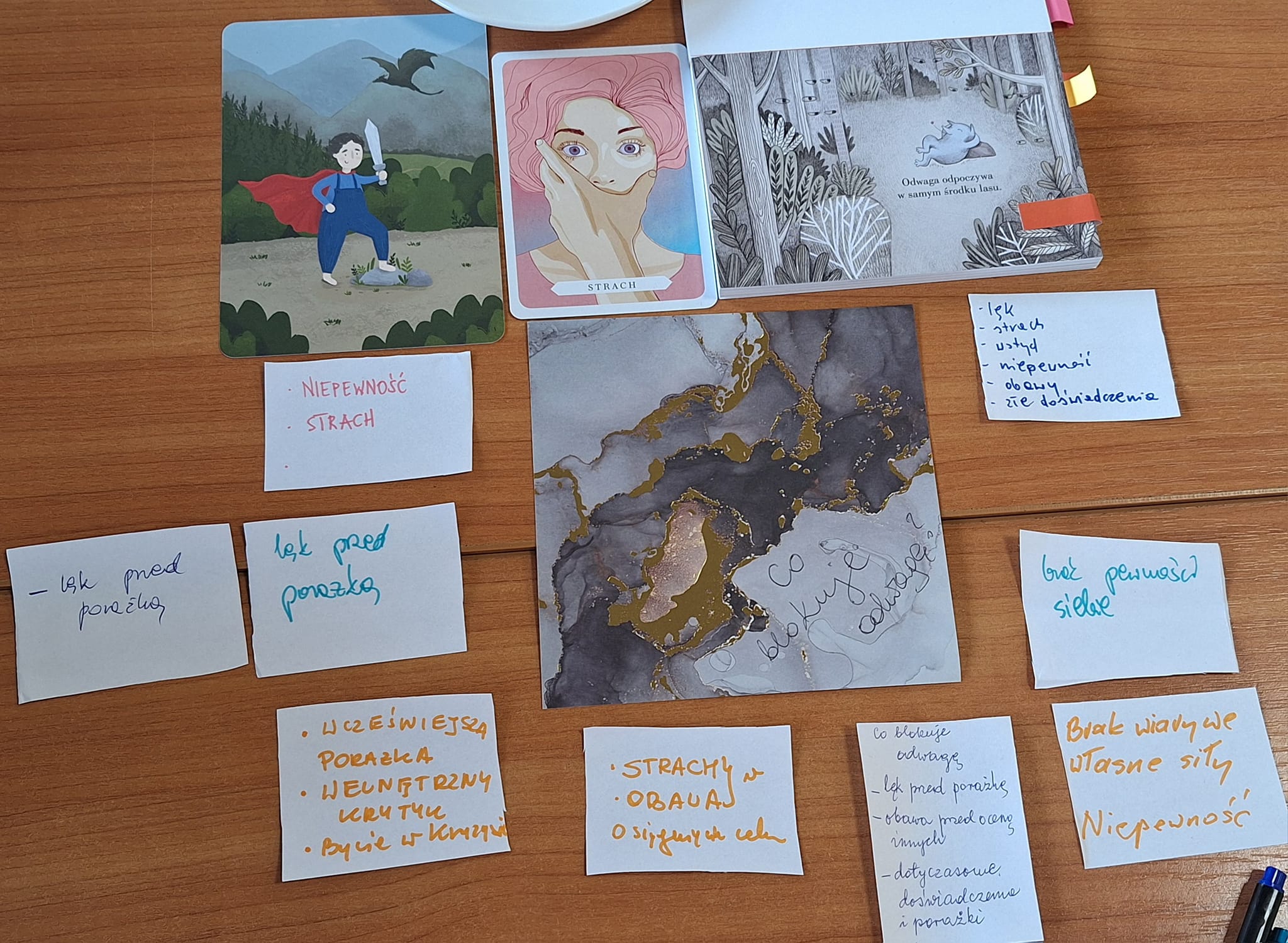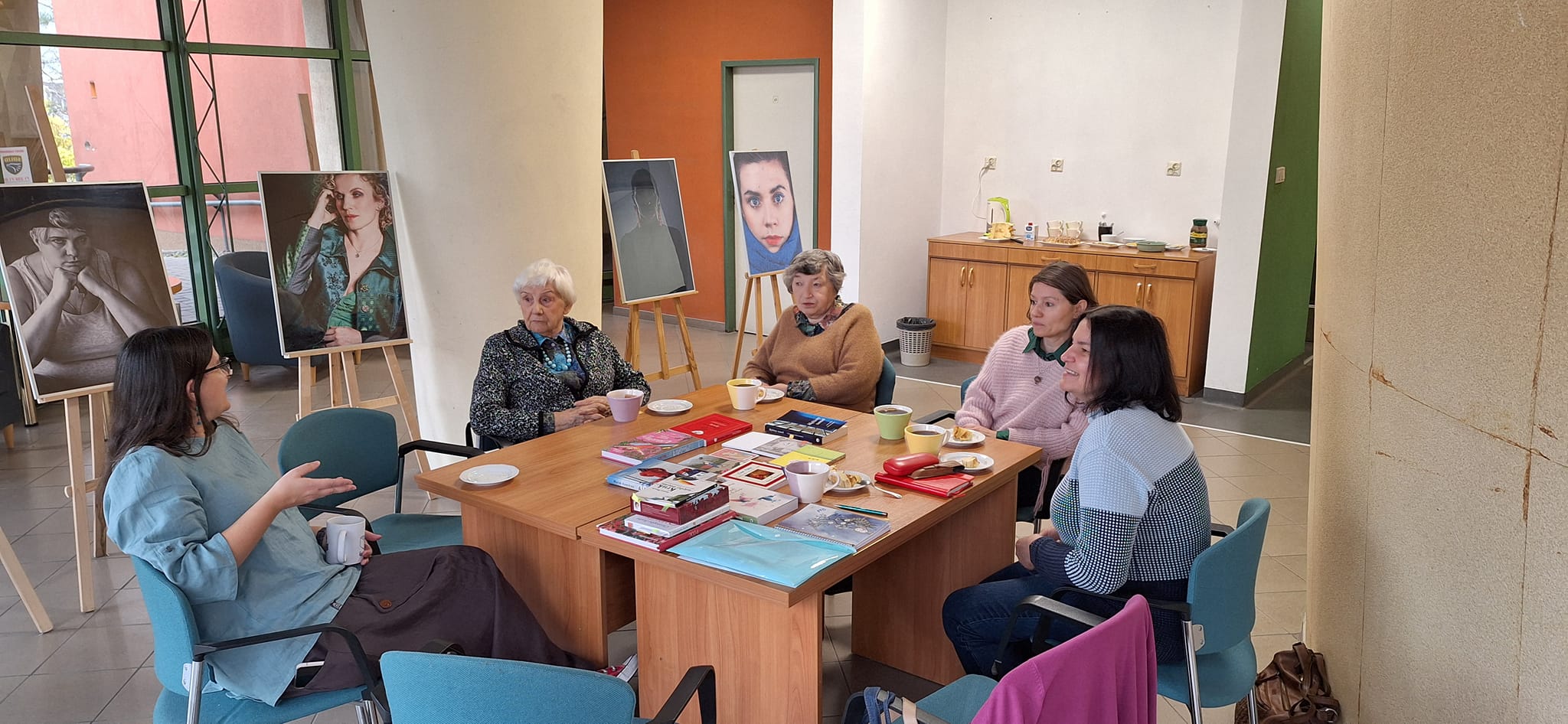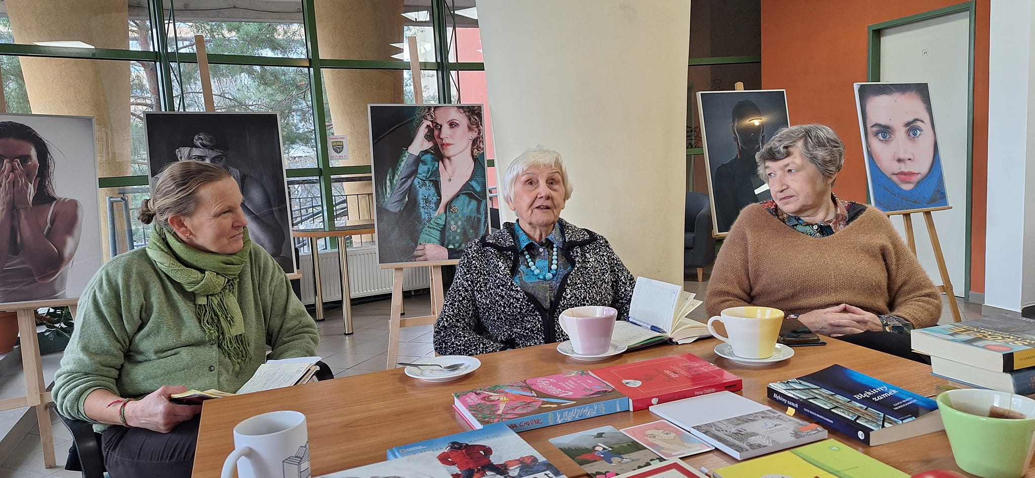 W drugiej części zebrania Magdalena Prokopowicz, przewodnicząca Koła, poprowadziła warsztaty biblioterapeutyczne "Odwaga rodzi się w działaniu". Uczestniczki wysłuchały przygotowanych tematycznie fragmentów tekstów o odwadze, wzięły udział w rozmowie kierowanej na temat przeczytanego tekstu, ciekawych ćwiczeniach, w tym także ruchowych z elementami jogi (m.in. ćwiczenie postawy ciała, sprzyjającej budowaniu pewności siebie - asany wojownika I i II), miały okazję uczestniczyć w medytacji prowadzonej oraz podzielić się swoimi refleksjami na temat odwagi. Dyskutowały czym jest odwaga, co ją buduje, wzmacnia, a co blokuje. Był też czas na zapoznanie się z wybranymi tytułami książek (m.in. Maria Król-Fijewska, Stanowczo, łagodnie, bez lęku. Wydanie 3, [dodruk]. Warszawa: W. A. B., 2007; Agnieszka Maciąg, Miłość. Ścieżki do wolności. Kraków: Wydawnictwo Otwarte, 2019; Marek Kamiński, Alfabet. Warszawa: Wydawnictwo G+J RBA, copyright 2013; Pema Chödrön, Odważne życie. Jak być nieustraszonym w dzisiejszym świecie. Warszawa: Zwierciadło, © 2021; Ewa Foley, Powiedz życiu tak! Poradnik dobrostanu. Łódź: Ravi, 2002) oraz alternatywnymi materiałami czytelniczymi na temat odwagi (Katarzyna Miller, Joanna Olekszyk, Poznaj siebie. Karty emocji. Warszawa: Wydawnictwo Zwierciadło, © 2020 - karta strach oraz tekst z książki, s. 95-96; Joanna Steinke-Kalembka, Bądź dla siebie dobry. Karty rozwojowe budujące poczucie własnej wartości. Edukowisko.pl - karta 24 Mały akt odwagi; Tina Oziewicz, Aleksandra Zając, Komu wyślesz uczucia? Zestaw pocztówek z książki Co robią uczucia? Warszawa: Wydawnictwo Dwie Siostry, © 2022 - pocztówka Odwaga).