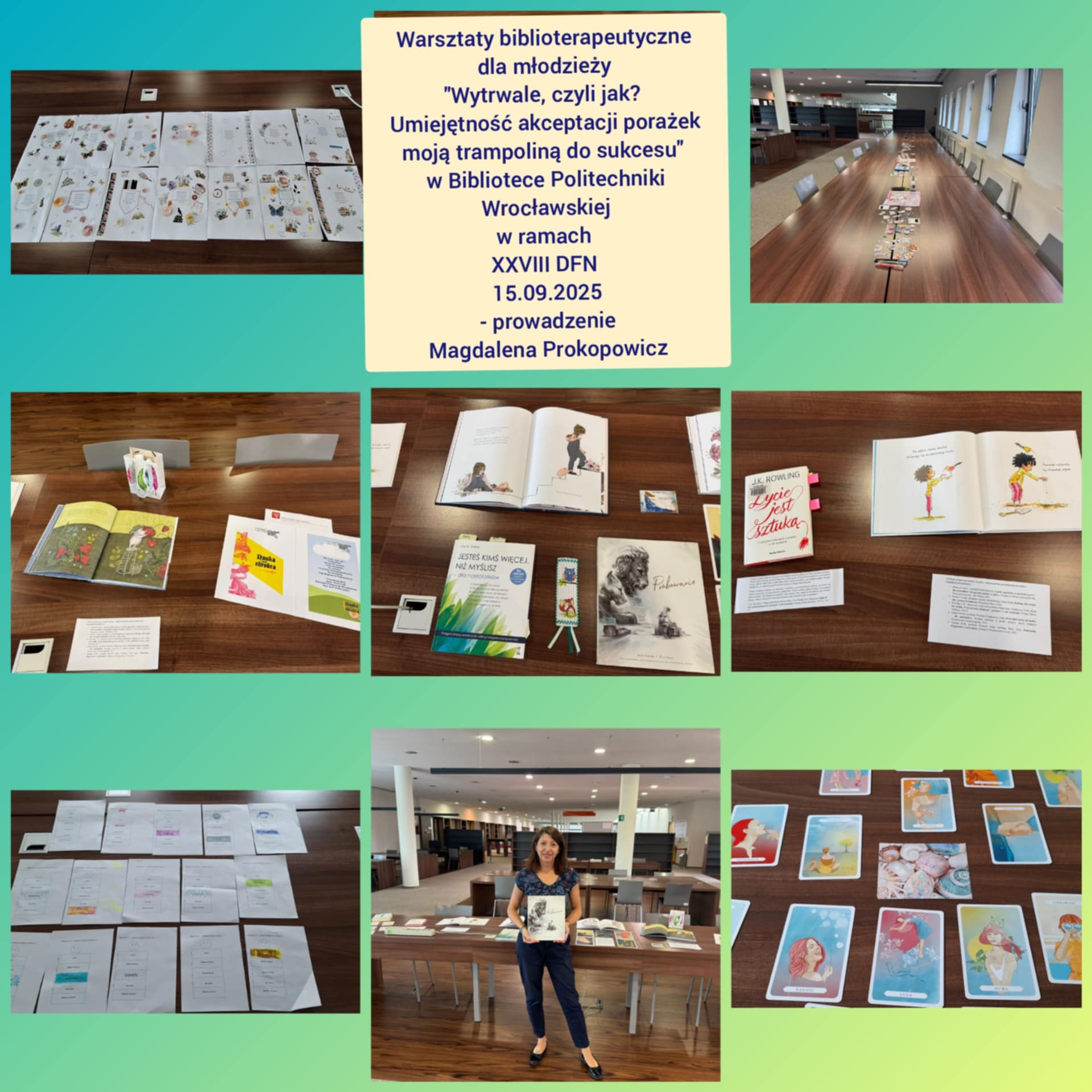 W dniu 15.09.2025 roku w ramach XXVIII Dolnośląskiego Festiwalu Nauki w Bibliotece Politechniki Wrocławskiej przewodnicząca Koła Wrocławskiego PTB Magdalena Prokopowicz poprowadziła warsztaty biblioterapeutyczne "Wytrwale, czyli jak? Umiejętność akceptacji porażek moją trampoliną do sukcesu" dla młodzieży z klas 7 i 8 szkoły podstawowej ![]()