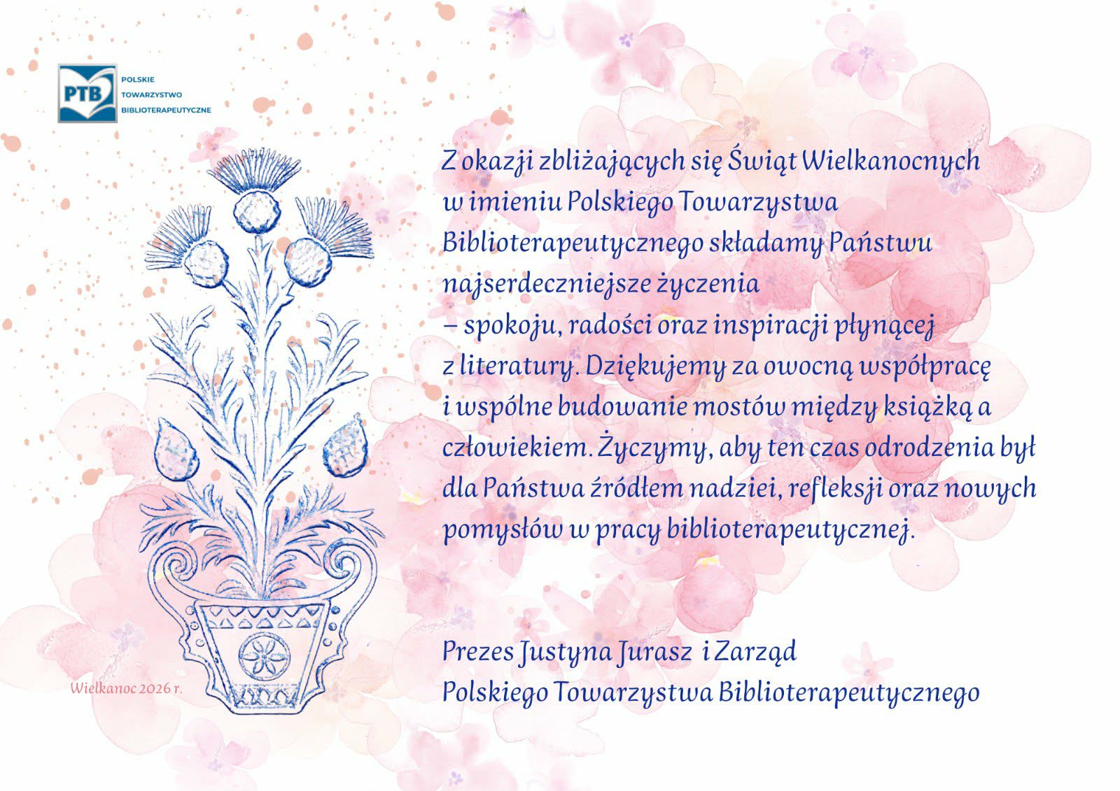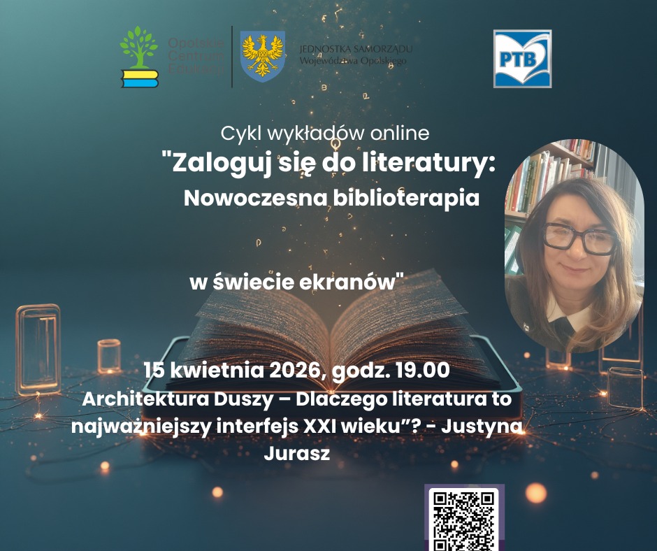 Opolskie Centrum Edukacji Pedagogiczna Biblioteka Wojewódzka w Opolu i Polskie Towarzystwo Biblioterapeutyczne zapraszają na kolejne spotkanie Ogólnopolskiej Sieci Współpracy i Samokształcenia ,,Biblioterapia w kształtowaniu wrażliwości", które odbędzie się 25 marca 2026 r. o godz. 19.00 na platformie MS Teams.