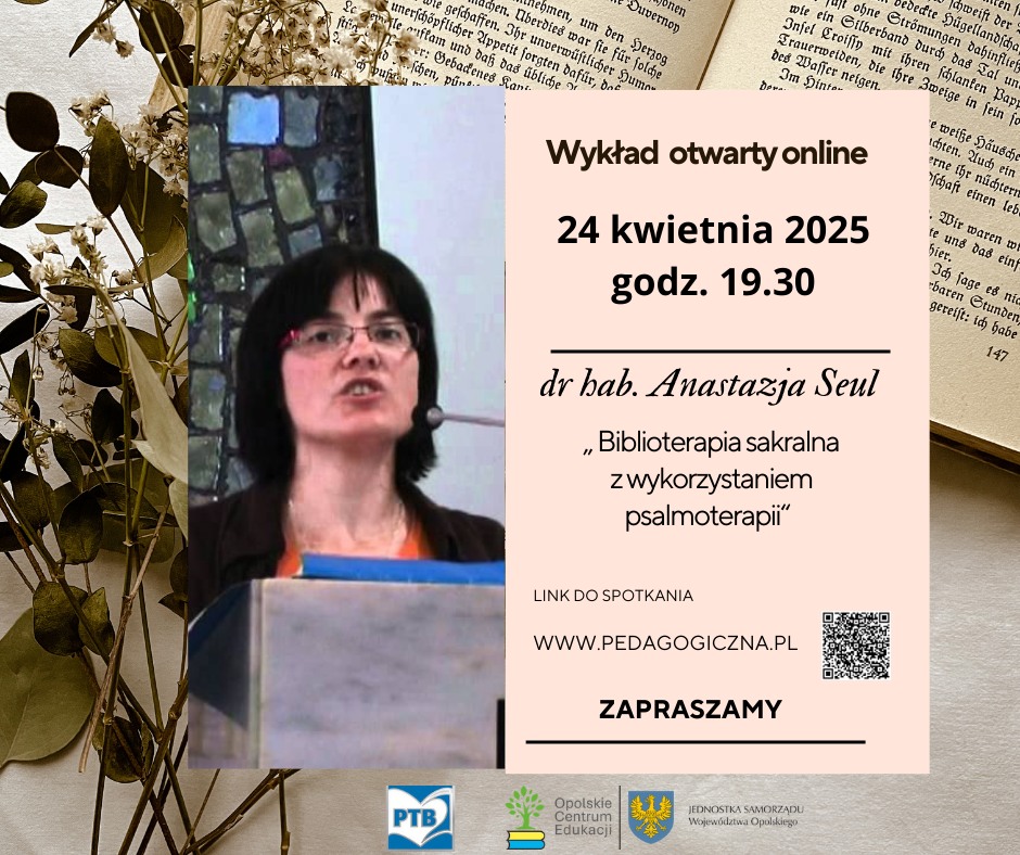 - ,,Biblioterapia sakralna wykorzystaniem psalmoterapii" - dr hab. Anastazja Seul - 24.04.25