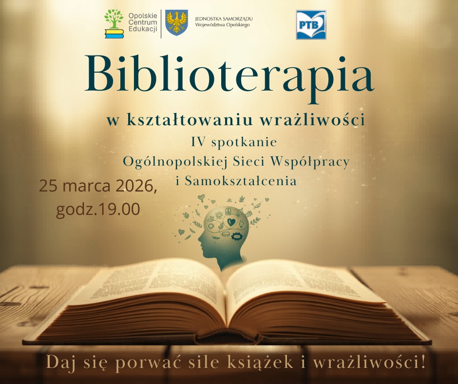 Zapraszamy na wyjątkowy maraton inspiracji online, organizowany przez Opolskie Centrum Edukacji PBW oraz Polskie Towarzystwo Biblioterapeutyczne.