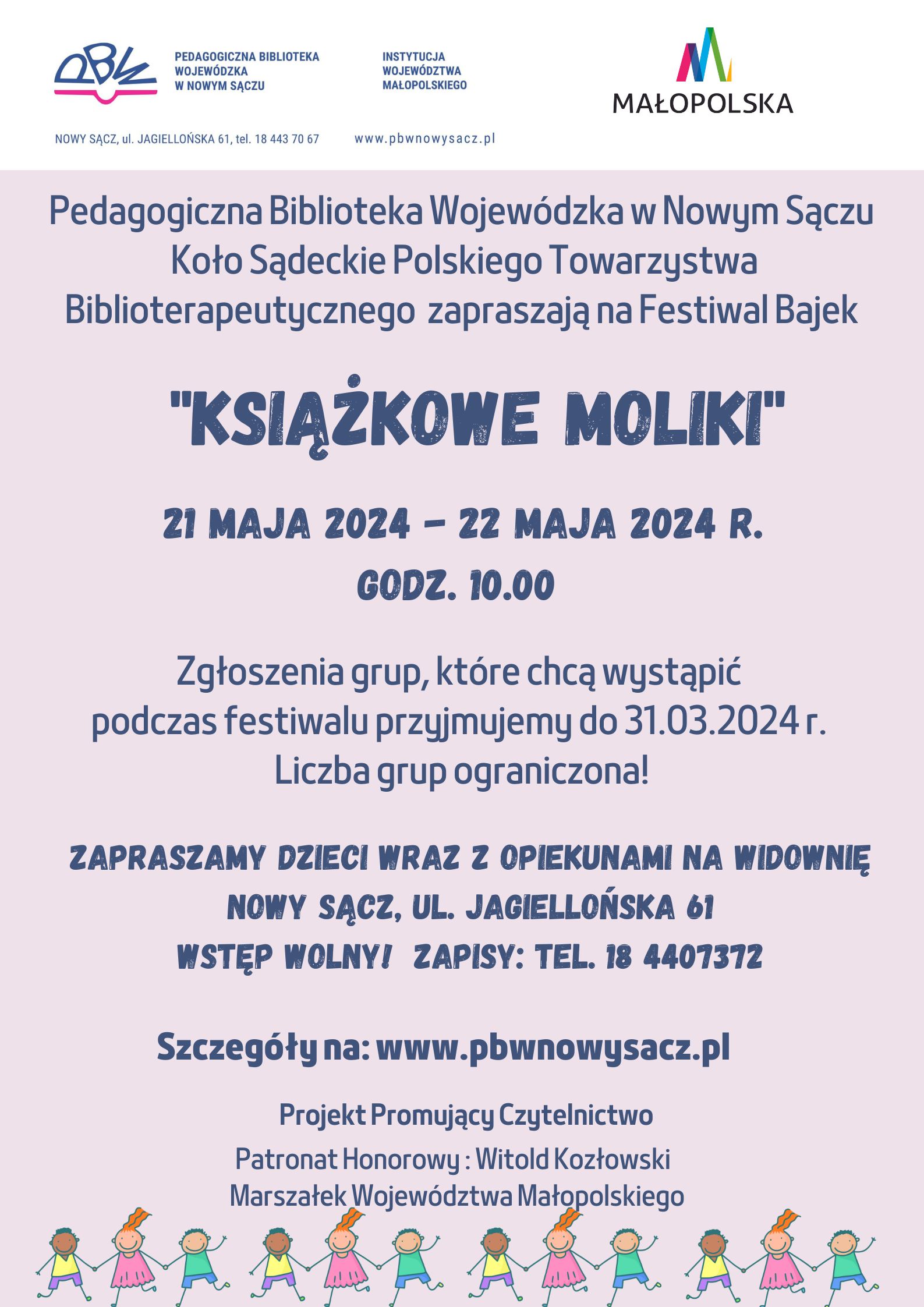 Czytaj więcej: Festiwal Bajek "Książkowe moliki" w Nowym Sączu - zaproszenie