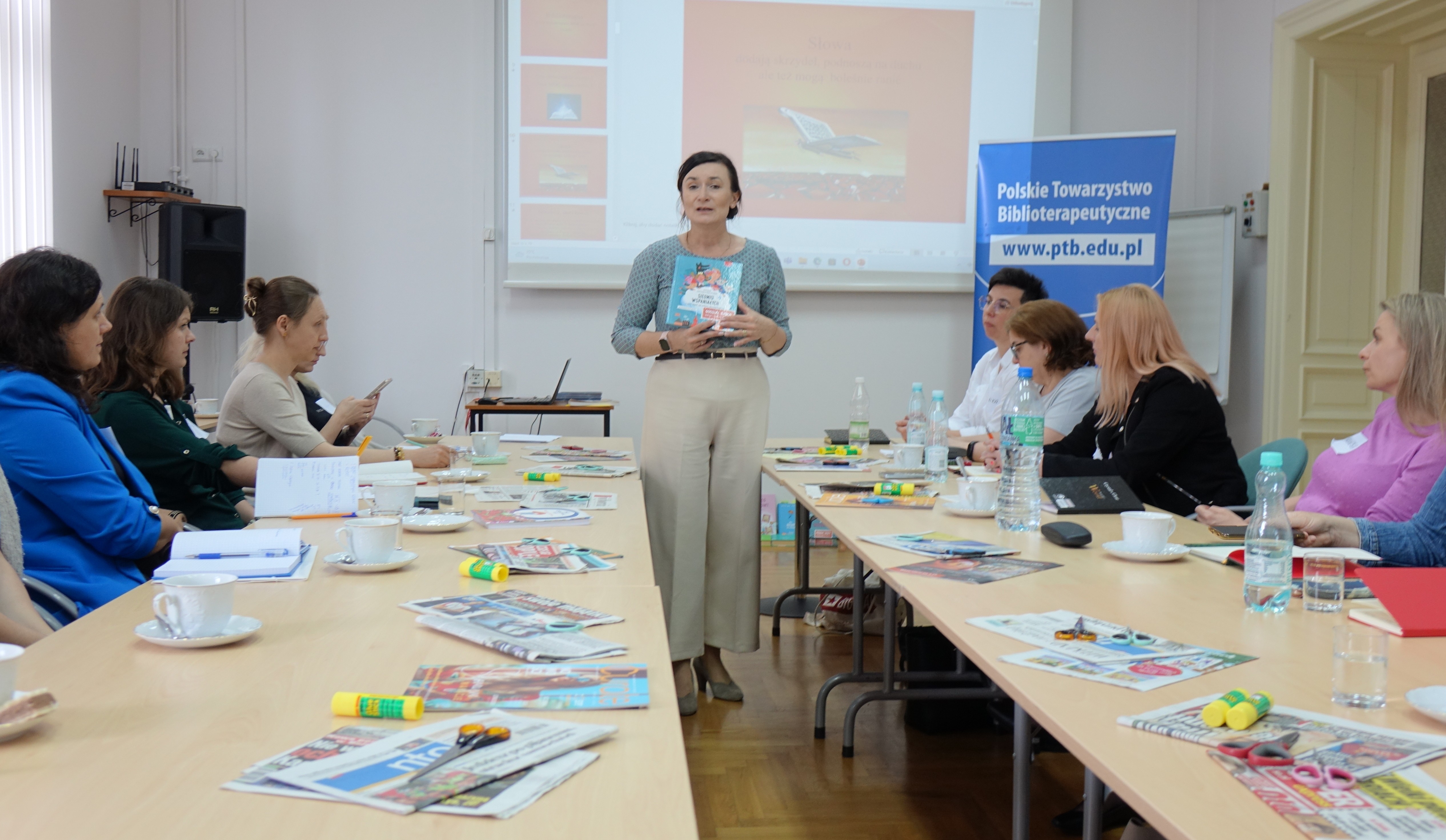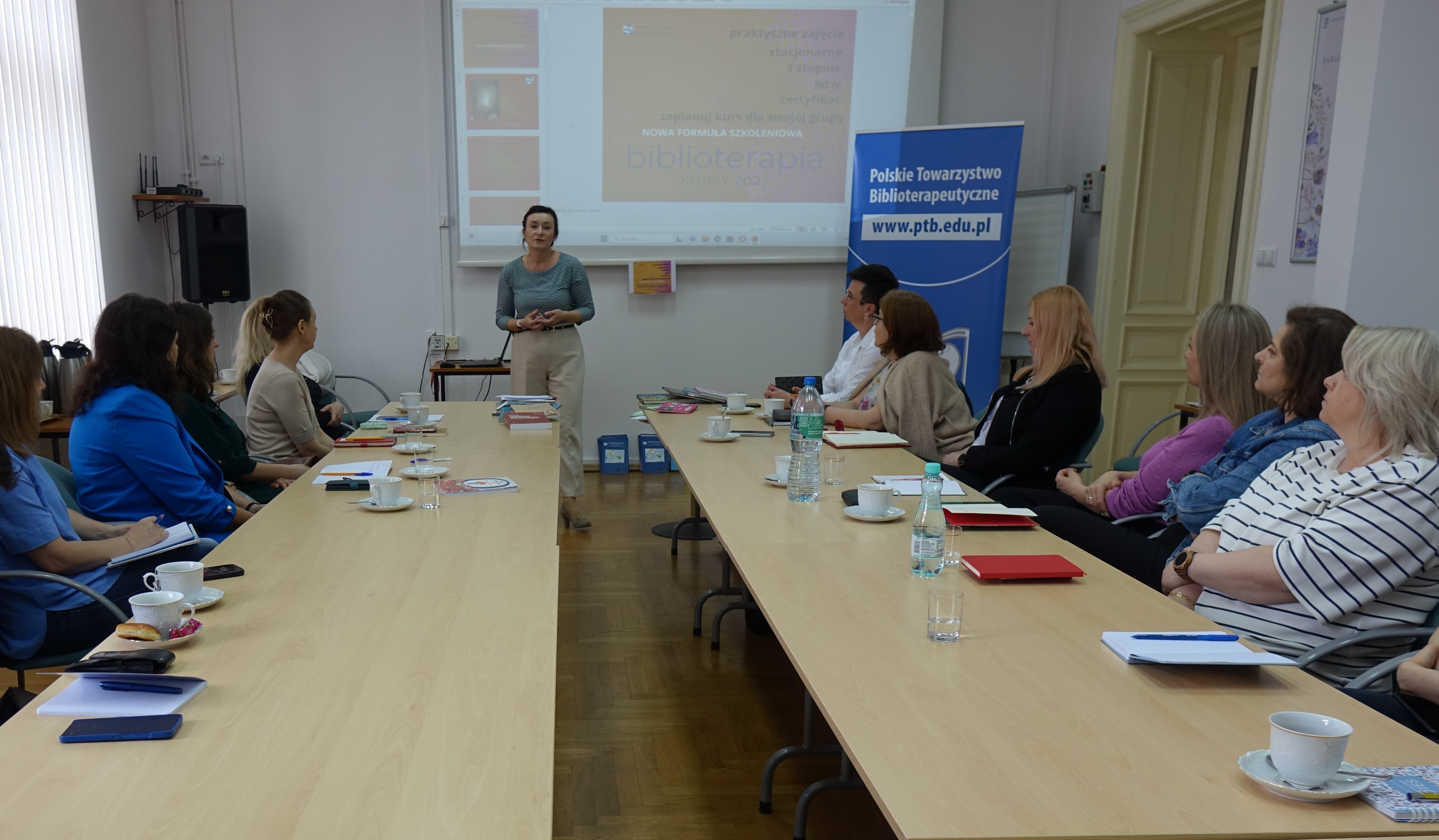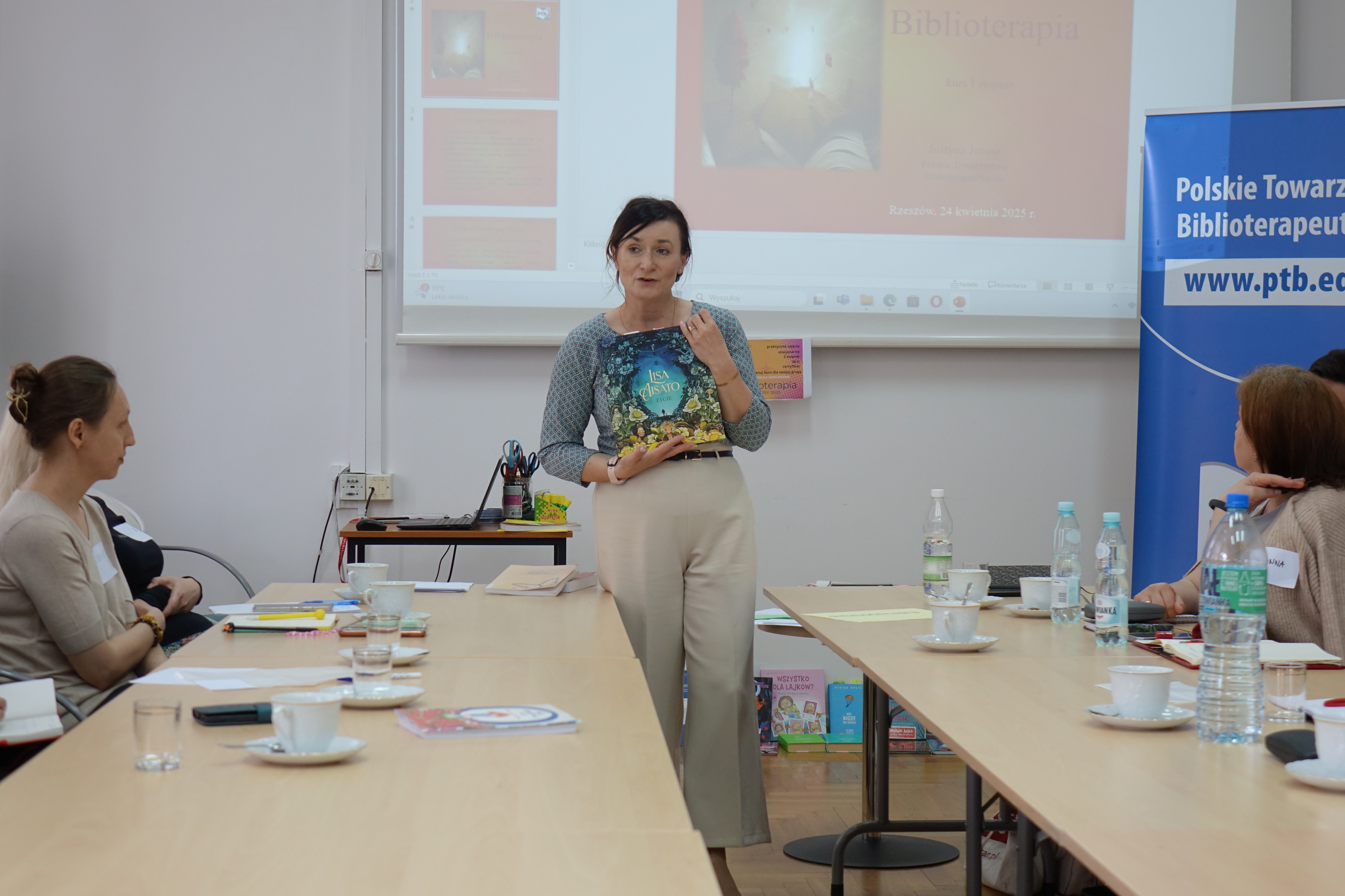 nia 25 i 26 kwietnia 2025 r. spotkaliśmy się w Wojewódzkiej i Miejskiej Bibliotece Publicznej w Rzeszowie, aby doskonalić warsztat biblioterapeutyczny. Pierwszą część kursu poprowadziła Justyna Jurasz, prezeska Polskiego Towarzystwa Biblioterapeutycznego, którą przywitała Bożena Janda, dyrektor Wojewódzkiej i Miejskiej Biblioteki Publicznej w Rzeszowie.