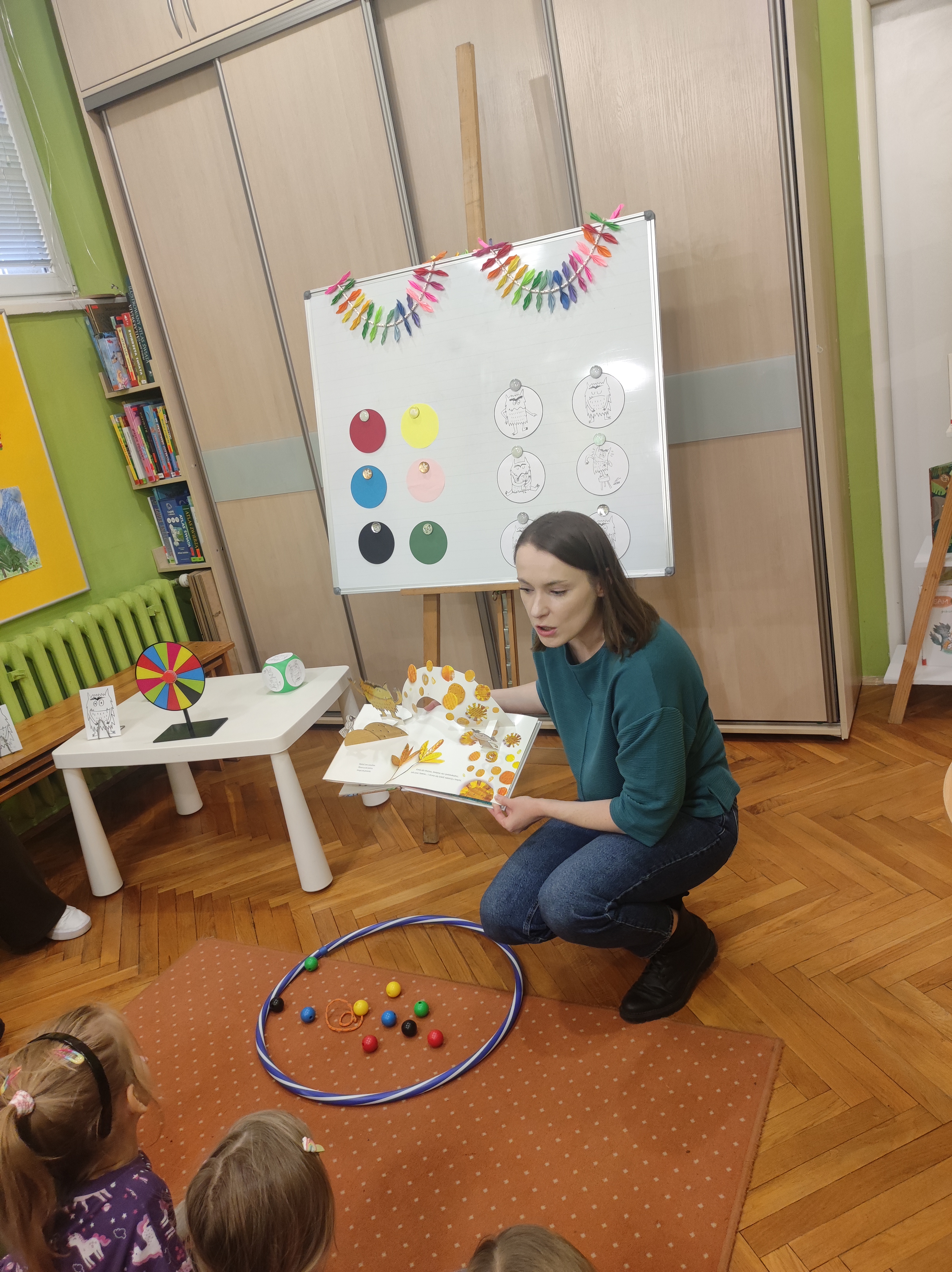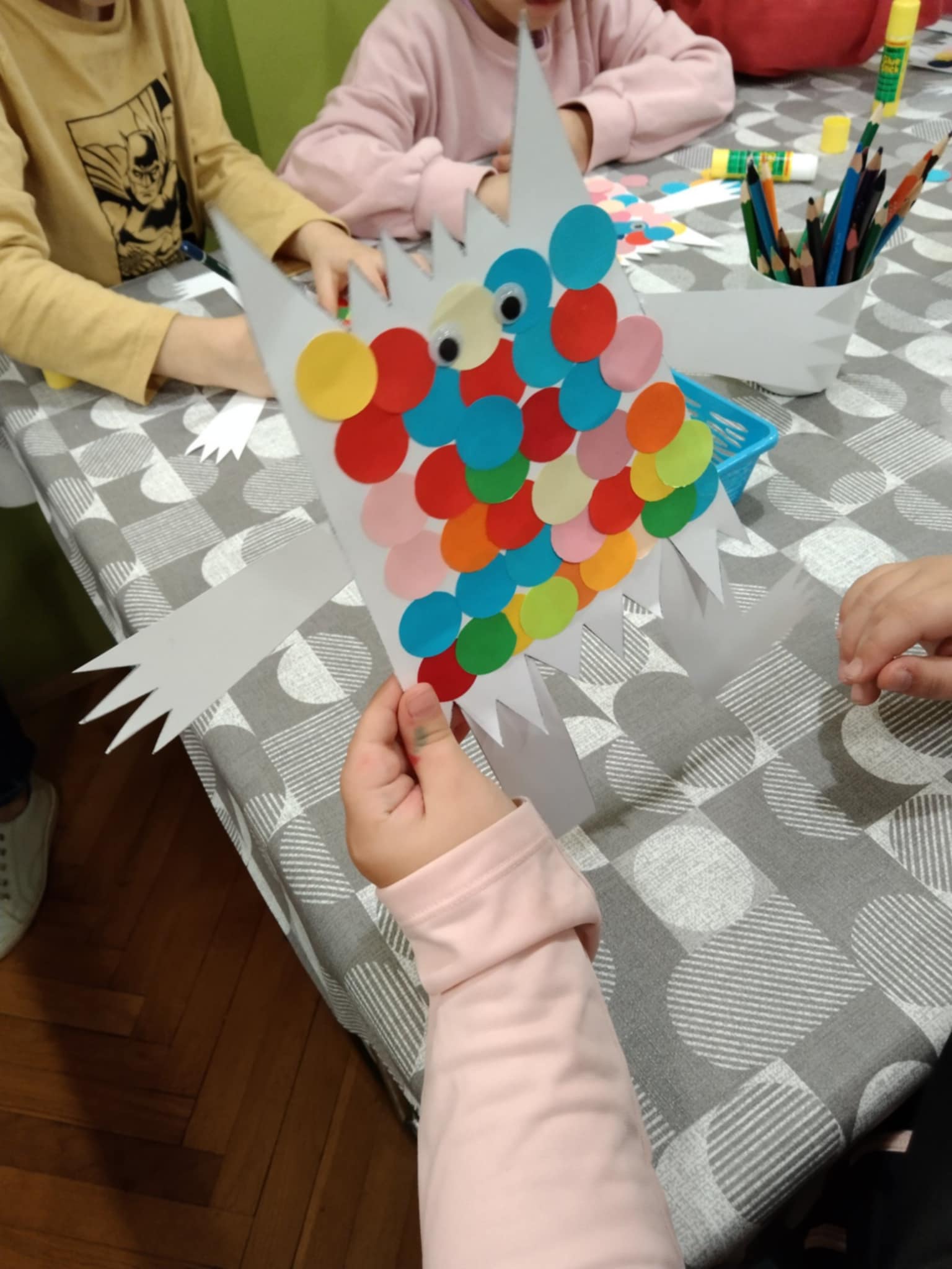 Zajęcia rozpoczęły się od wspólnego czytania i oglądania przestrzennego wydania książki. Trójwymiarowe ilustracje ułatwiły dzieciom wejście w świat Kolorowego Potwora i stały się punktem wyjścia do rozmowy o uczuciach – ich nazywaniu, rozumieniu oraz sposobach radzenia sobie z nimi. Uczestnicy chętnie dzielili się własnymi przemyśleniami, a prowadząca czuwała nad tym, aby każde dziecko czuło się wysłuchane i swobodnie mogło wyrazić siebie.