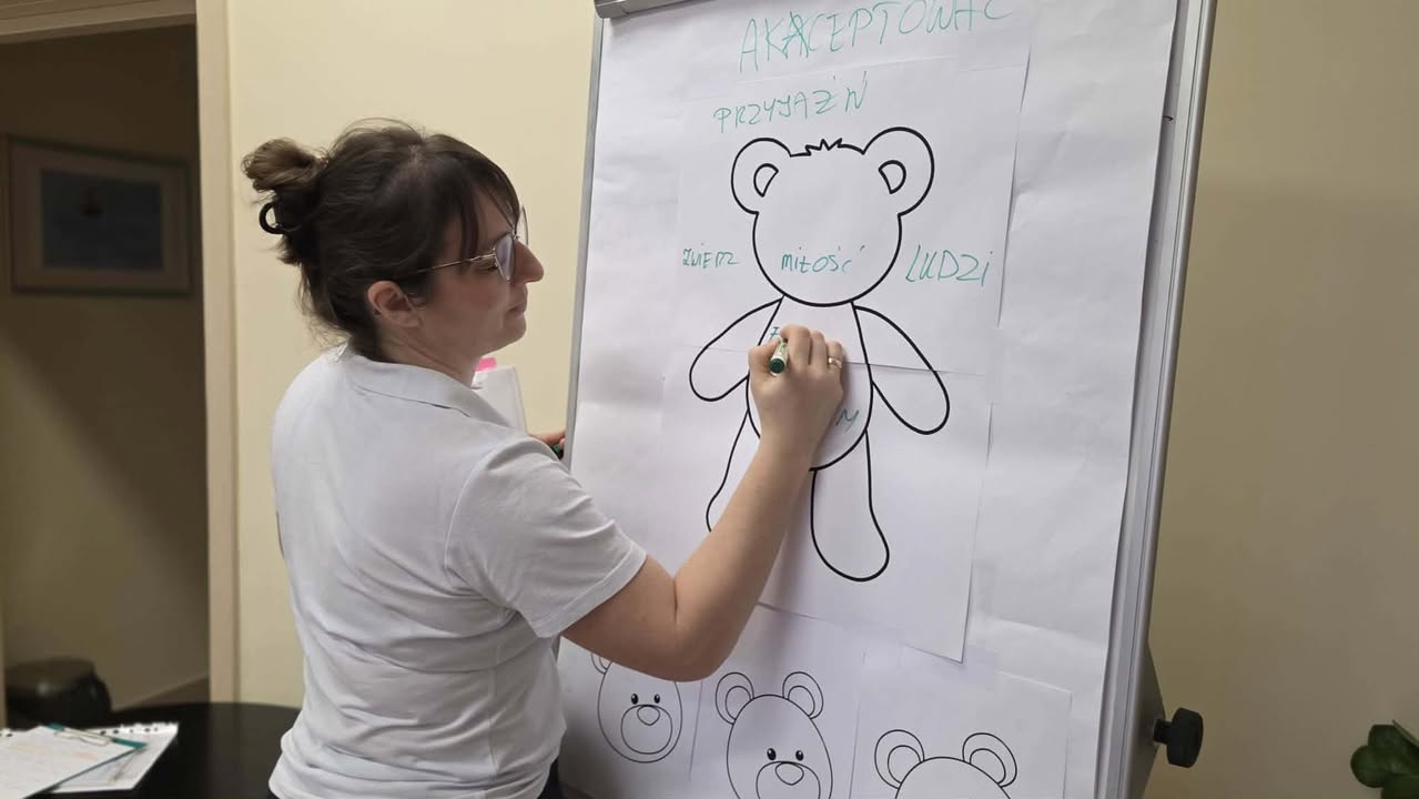 Podczas spotkania rozmawialiśmy z dziećmi o emocjach bohaterów, o tym, czym jest akceptacja i dlaczego jest tak ważna – zarówno w relacjach z innymi, jak i w stosunku do samych siebie. Nie zabrakło refleksji, dzielenia się własnymi doświadczeniami oraz twórczych aktywności, które pomogły lepiej zrozumieć omawiany temat.
