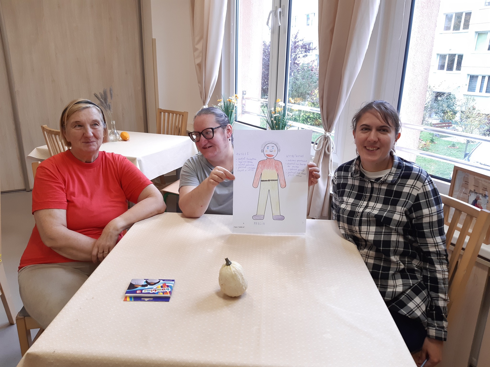 Jest to opowieść o nikomu nieznanym samotnym, spokojnym i cichym Panu, który wiedzie zwyczajne, codzienne życie w bloku, dlatego ludzie nie zwracają na niego uwagi. Jednak jak się okazuje, Pan Nikt ma swą tajemnicę, która czyni jego życie czymś wyjątkowym. Podczas zajęć uczestnicy wypowiadali się, co w ich życiu jest zwyczajnego, a co wyjątkowego. Rozmawialiśmy o tym: jak to jest, gdy ktoś czuje się,, niewidzialny’’; co możemy zrobić, by osoby niedostrzegane przez ogół, poczuły, że zasługują na uwagę; jak czują się osoby samotne; o co chcielibyśmy zapytać taką osobę oraz dlaczego każdy z nas jest ważny i wyjątkowy. Potem uczestnicy podzielili się na dwie grupy, żeby stworzyć portrety „Pana Nikt” po przemianie na „Pana Ktoś” z nadaniem imienia, kolorowych ubrań i wypisanie rzeczy zwykłych i wyjątkowych, które wykonuje na co dzień. Powstali Panowie: MARCIN i WALENTY. Na zakończenie za pomocą kart DIXIT, uczestnicy układali opowieść Pana Nikt, w momencie, kiedy w jego otoczeniu pojawia się osoba, która go zauważa. Nasza opowieść zakończyła się tym, że Pan Nikt otrzymał tożsamość jako Pan Alfred i zyskał wielu przyjaznych sąsiadów, z którymi się regularnie spotykał, dzieląc się swoim talentem.